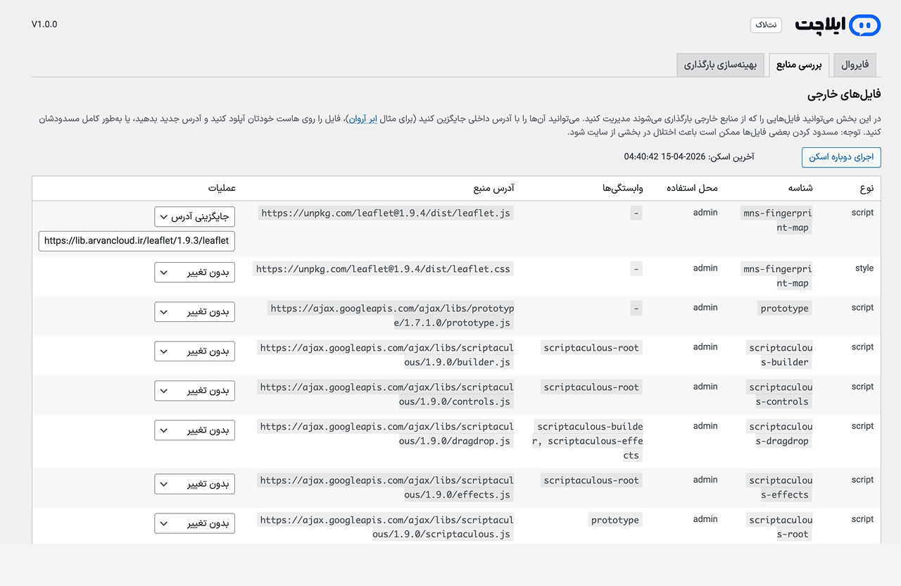 فایلهای CSS و JS خارجی را در فرانتاند و پنل مدیریت سریع شناسایی و با نسخه داخلی جایگزین کنید.